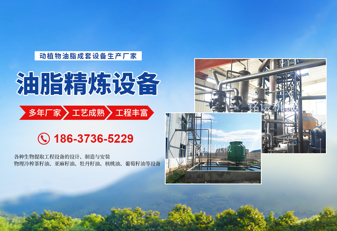 河南省銘謙機械設備有限公司,是集開發、科研、生產、安裝、調試、售后服務為一體的現代化企業?! ∥夜緭碛袃灹嫉募夹g設備,為動物油熬煉設備,無公害化處理設備,核桃油設備,茶籽油設備,牡丹籽油設備,牡丹籽油機械產品的品質提供了有力的技術和質量保證?! 镉土项A處理、榨油成套設備的設計、制造與安裝?! 镉土辖鲈O備的設計、制造與安裝。 ★半連續,連續(化學)物理精煉設備的設計、制造與安裝。 ★茶籽油,牡丹籽油,核桃油,亞麻籽油,葡萄籽油的設備的設計、制造與安裝?! 锔鞣N生物提取工程設備的設計、制造與安裝?! 锔鞣N(豬、牛、羊、雞、鴨等)油廠熬制、精煉設備的設計、制造與安裝?! 餄庀阈突ㄉ?、菜籽油、茶籽油、亞麻籽油、葵花籽油等設備的設計、制造與安裝?! 镂锢砝湔ゲ枳延汀喡樽延汀⒛档ぷ延汀⒑颂矣?、葡萄籽油等設備的設計、制造與安裝?! 锒诡惽謇碓O備、雜糧脫皮制粉設備、小麥制粉設備、大米加工流水線、小米加工流水線等設備的設計、制造與安裝。 ★各種過濾設備,化工設備的設計與制造。 我們以工藝和信譽求發展,以質量和設備求生存。堅持“質量為上,用戶為上”的宗旨為客戶提供完善的技術咨詢和售后服務。始終把產品質量作為企業生存、發展的主要要務,竭誠歡迎新老用戶光臨指導。